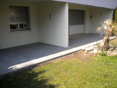 Sitzplatz mit neuen Zementplatten versehen